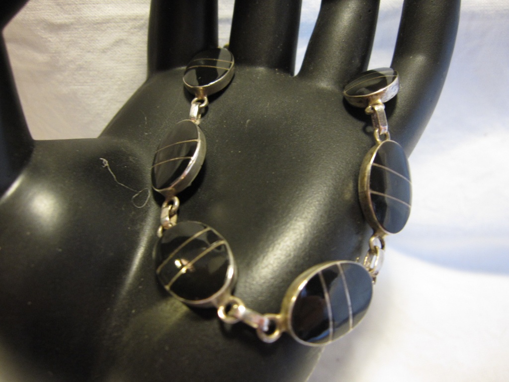 Zeer mooie armband in zilver, met jaspis en onyx .19 cm, en 6 gram .
