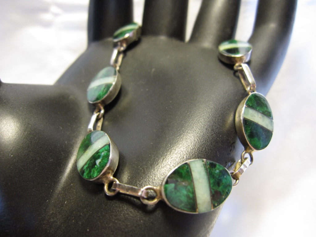 Zeer mooie armband in zilver, met malachiet .19 cm, en 4 gram .